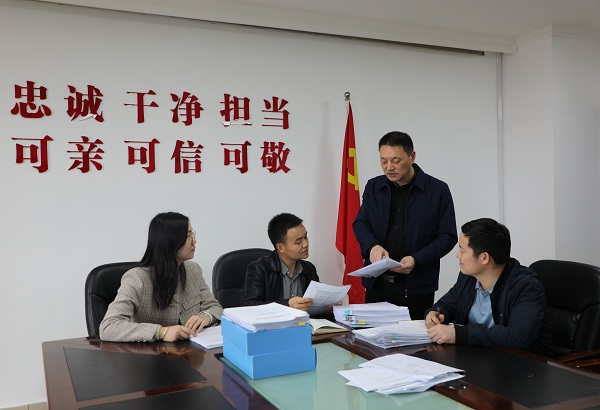 图为吴晓华(右二)正在和同事们一起研判纠治“四风”专项监督检查中发现的问题线索。资料图片