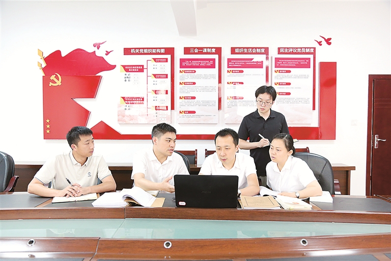 图为四川省泸州市合江县纪委监委案件审理室和第八纪检监察室工作人员围绕徐敬忠案有关问题进行研讨。郭志达 摄