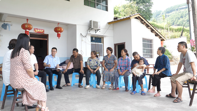 图为李炜(左四)深入一线,与群众面对面交流,收集问题线索。周弘历 摄