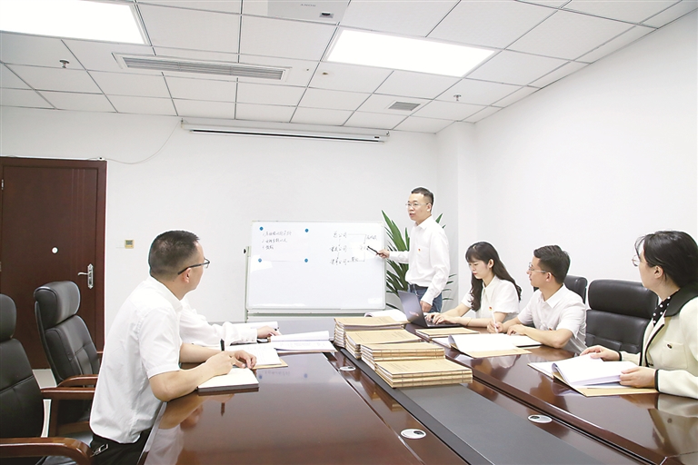 图为重庆市梁平区纪委监委案件审理室和专案组工作人员围绕兰显发案有关问题进行研讨。魏厚强 摄