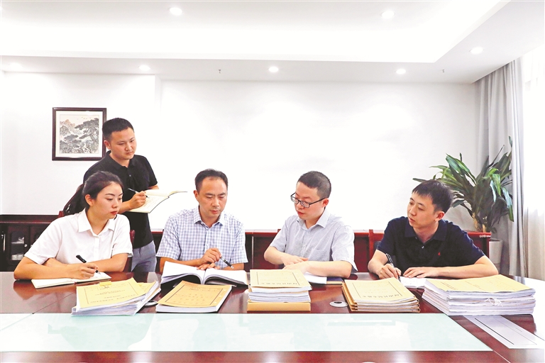 图为四川省宜宾市纪委监委案件审理室和专案组工作人员围绕周晓川案有关问题进行研讨。邱环 摄