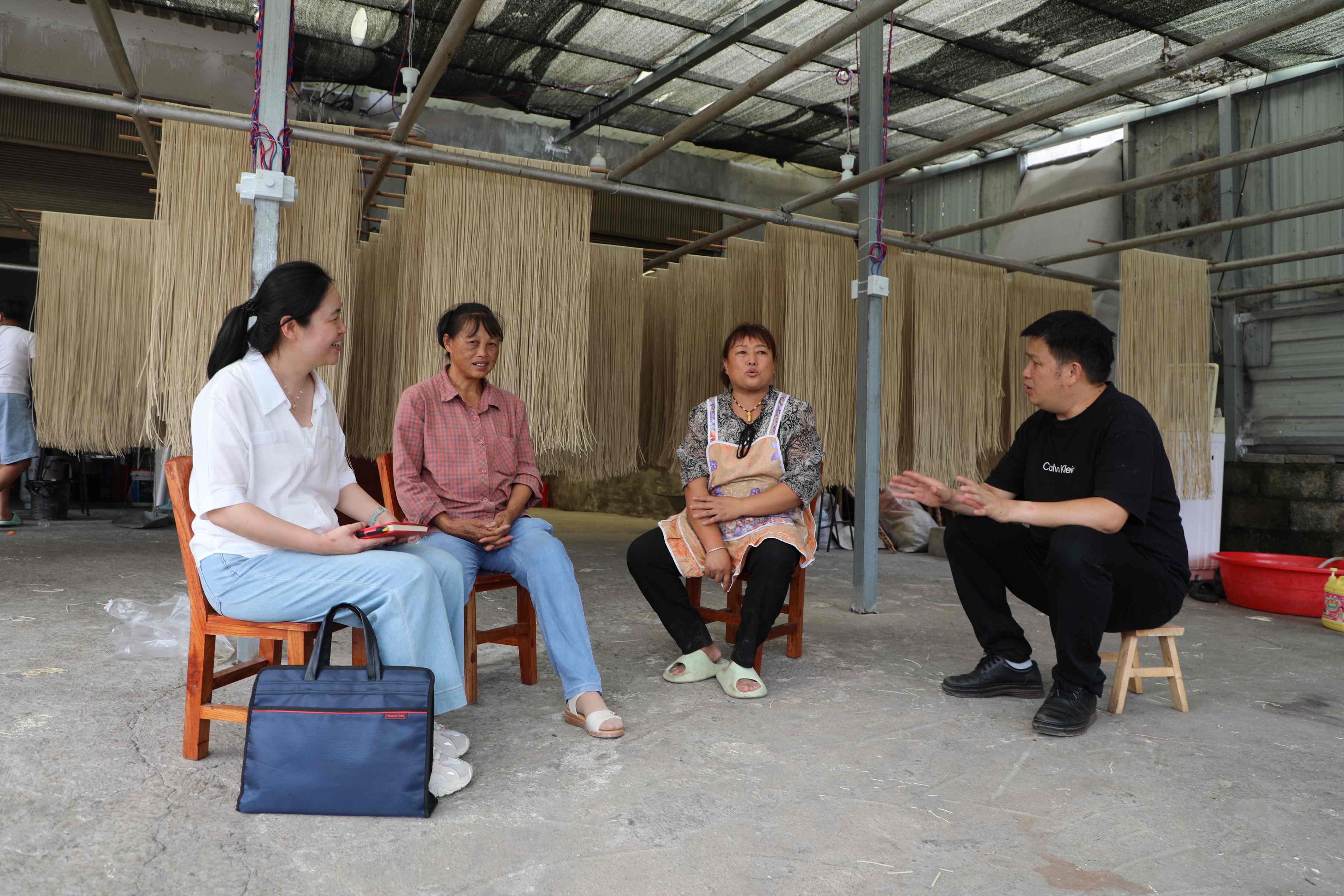 图为喻泽伟(右一)正在走访群众,收集问题线索。张丹 摄