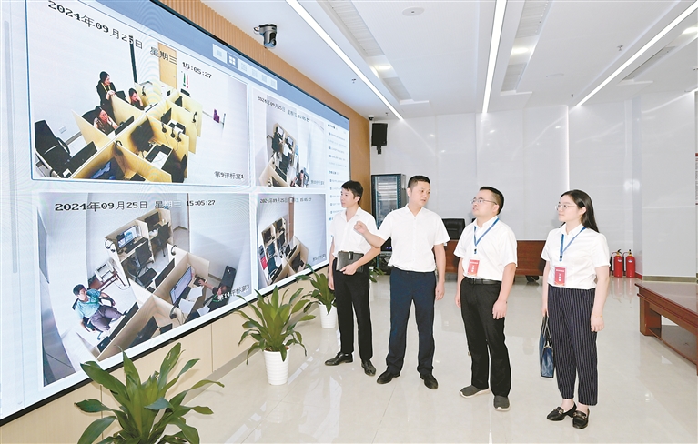江西省南昌市纪委监委紧盯案件暴露出的招投标领域突出问题推动促改促治,督促有关职能部门优化硬件设施、严格日常监管、加强制度执行。图为近日,该市纪检监察干部在南昌公共资源交易中心音视频见证终端电子屏幕前对交易过程进行抽查。 南昌市纪委监委供图