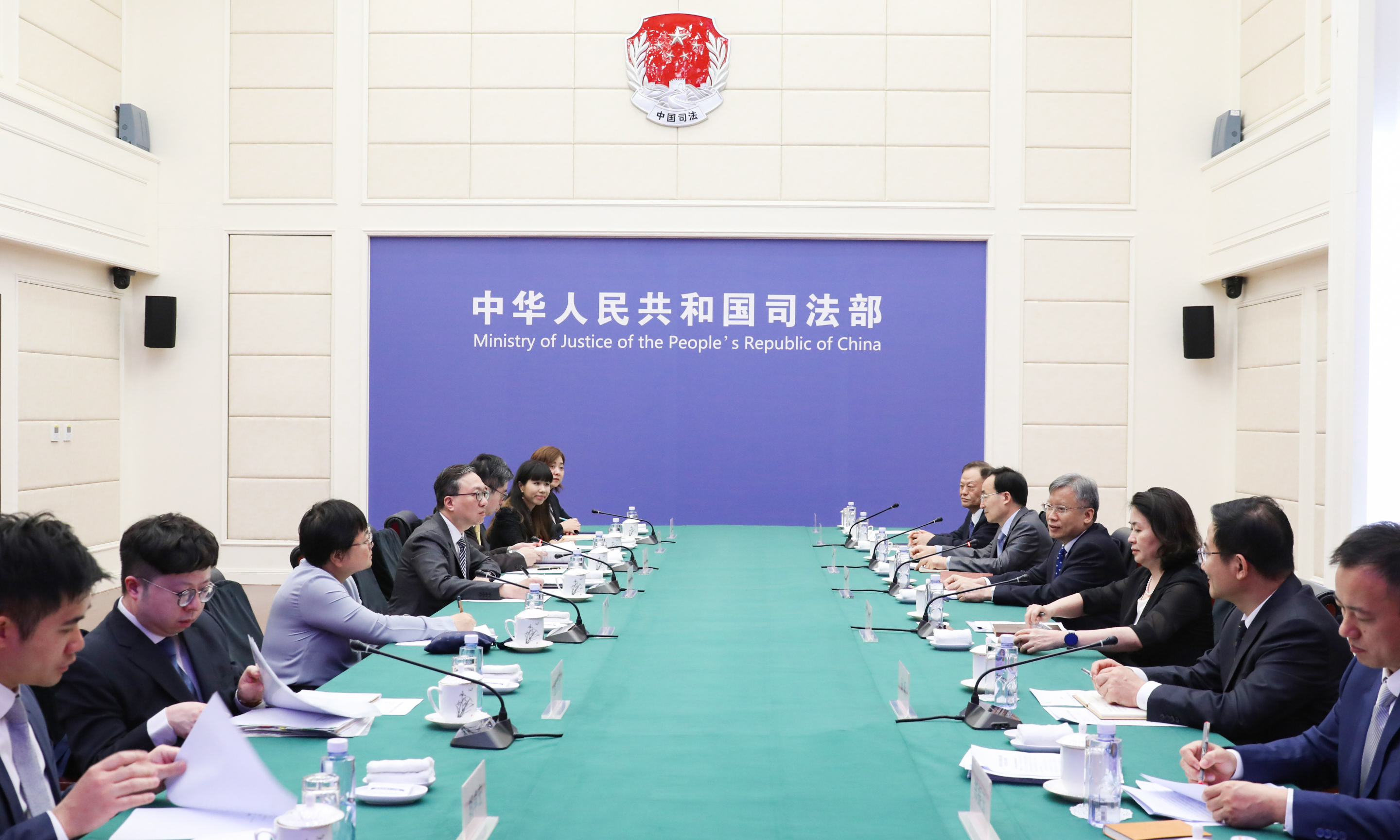 7月11日上午,司法部部长贺荣在京会见香港律政司司长林定国一行,双方围绕加强内地与香港司法法律界交流合作、推进粤港澳大湾区法治建设等深入交流。