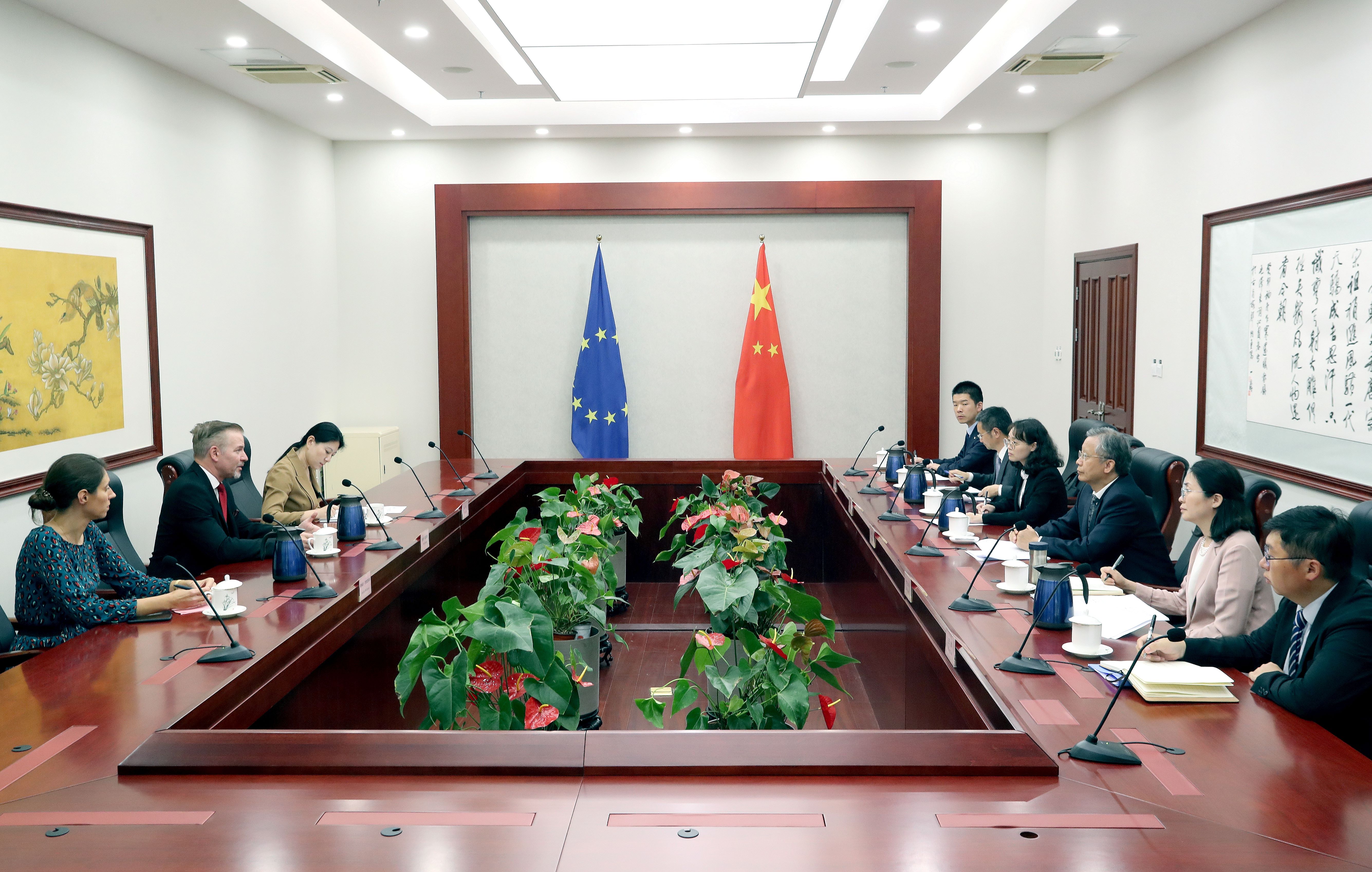 9月26日,司法部副部长王振江在京会见欧盟检察署副检察长克莱蒙特。
