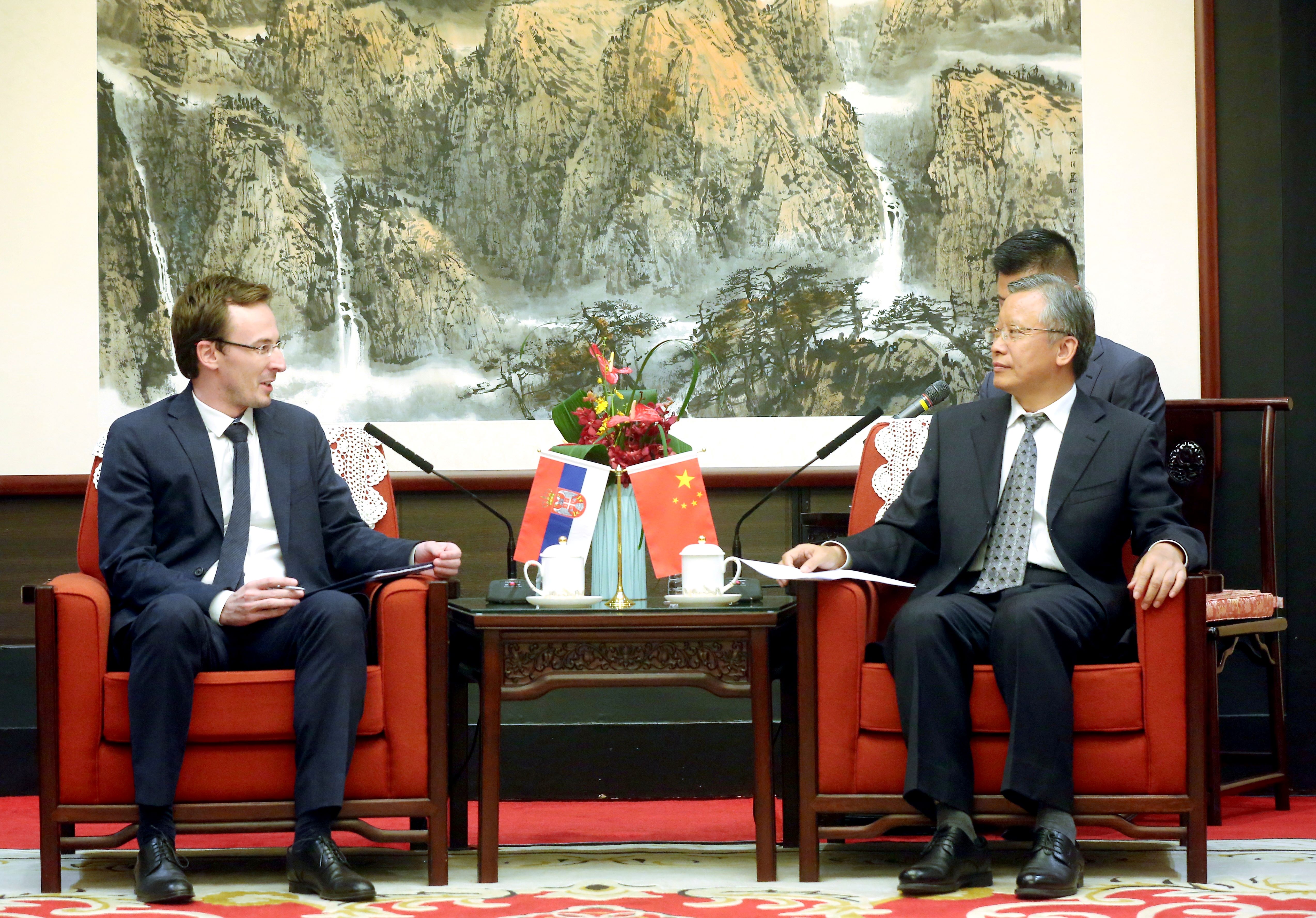 9月26日,司法部副部长王振江在京会见塞尔维亚司法部部长助理文什。