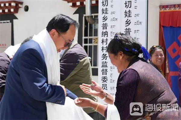 张伟律师走进藏族同胞家中,了解当地群众的生活方式、民风民俗和服务地仁布县的地理条件、人口组成及村居特点。