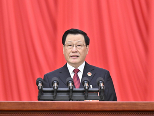 受全国人大常委会委托,赵乐际委员长向大会报告全国人大常委会工作...
