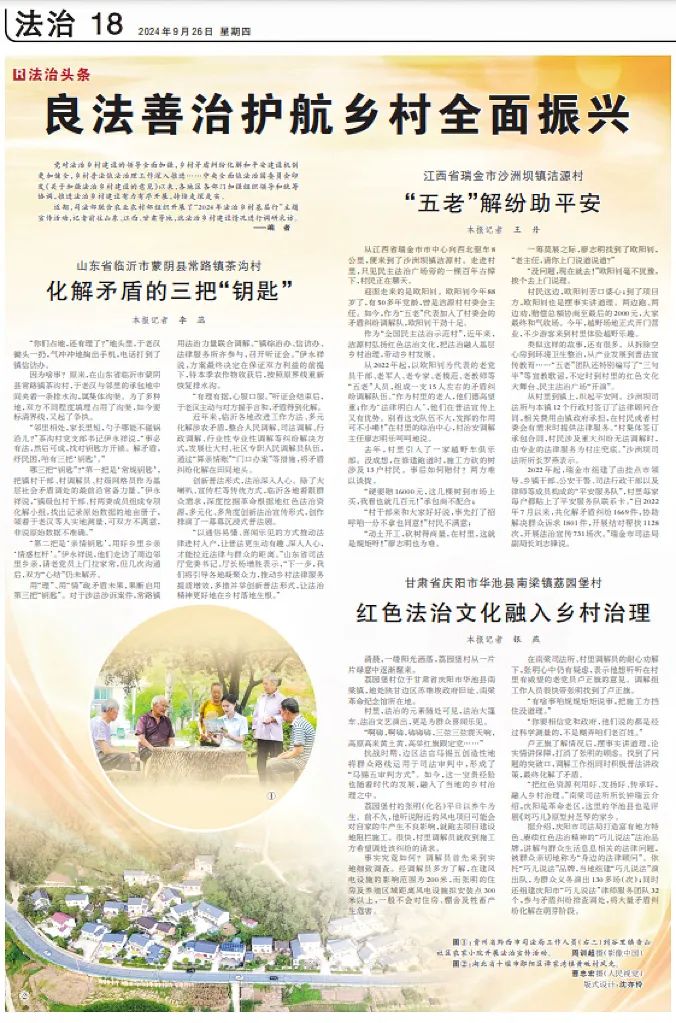 近期,司法部联合农业农村部组织开展了“2024年法治乡村基层行”主题宣传活动,记者前往山东、江西、甘肃等地,就法治乡村建设情况进行调研采访。