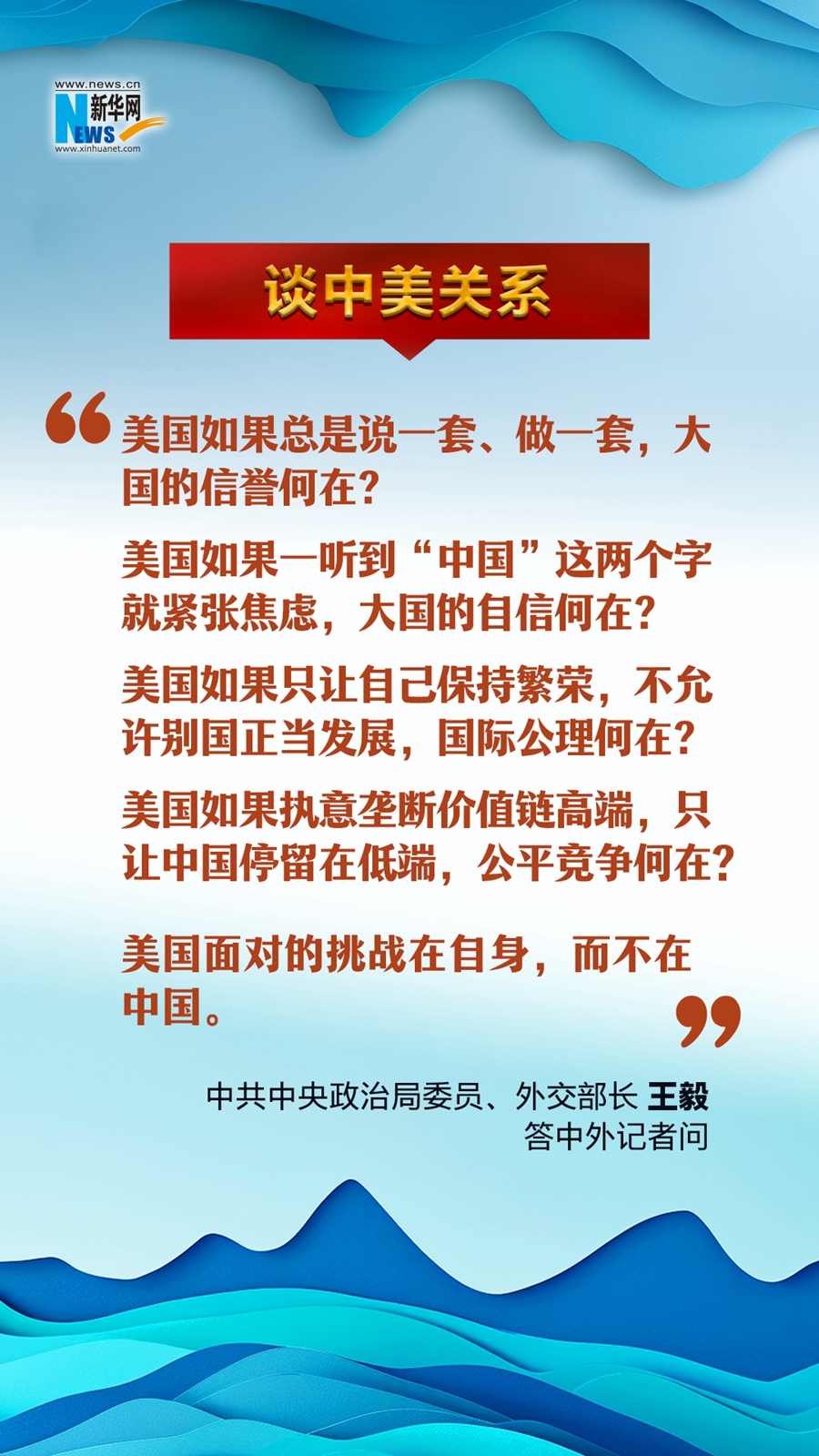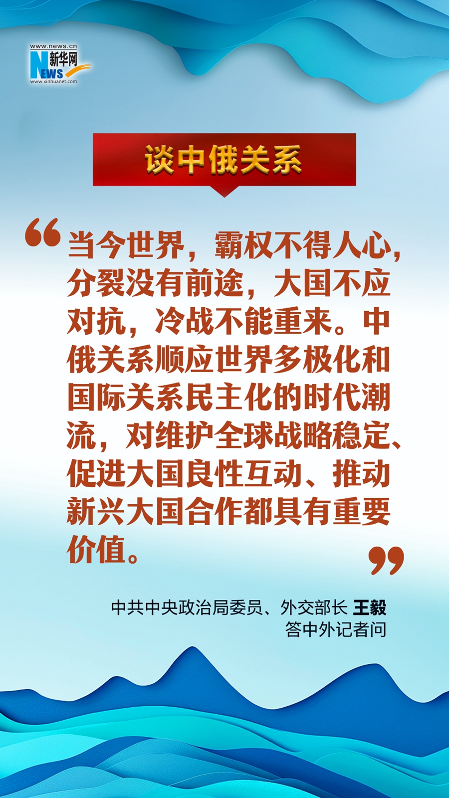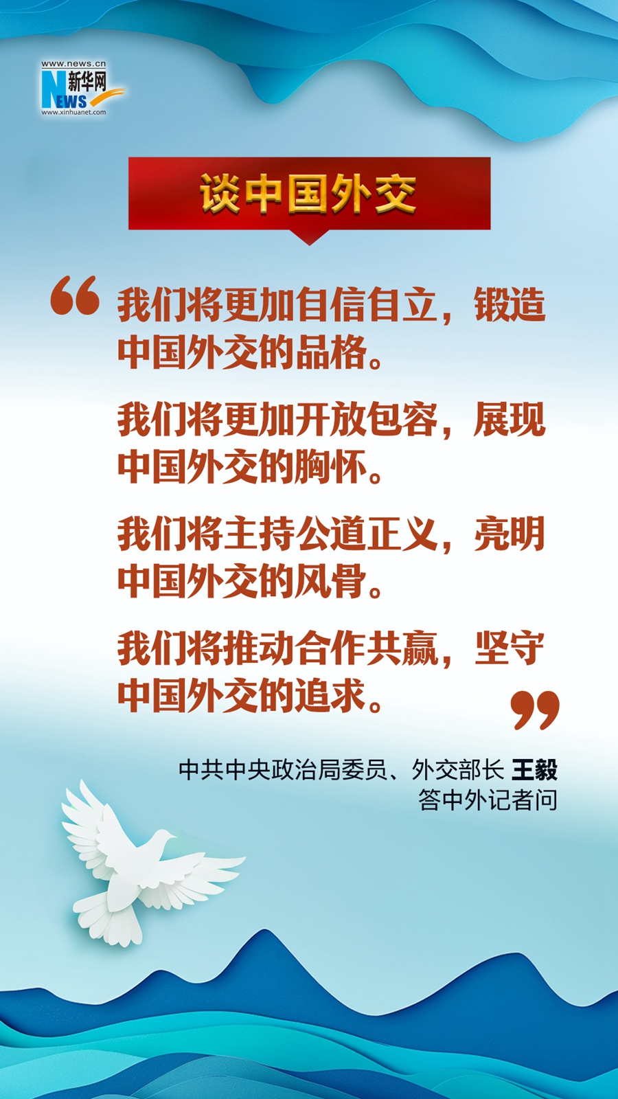 3月7日上午,中共中央政治局委员、外交部长王毅就“中国外交政策和对外关系”相关问题回答中外记者提问。今年外交工作重点、中美关系、中俄关系、乌克兰危机、巴以冲突、台海局势……王毅就重点问题精彩作答、亮点频出,一起感受中国外交的态度和风范!