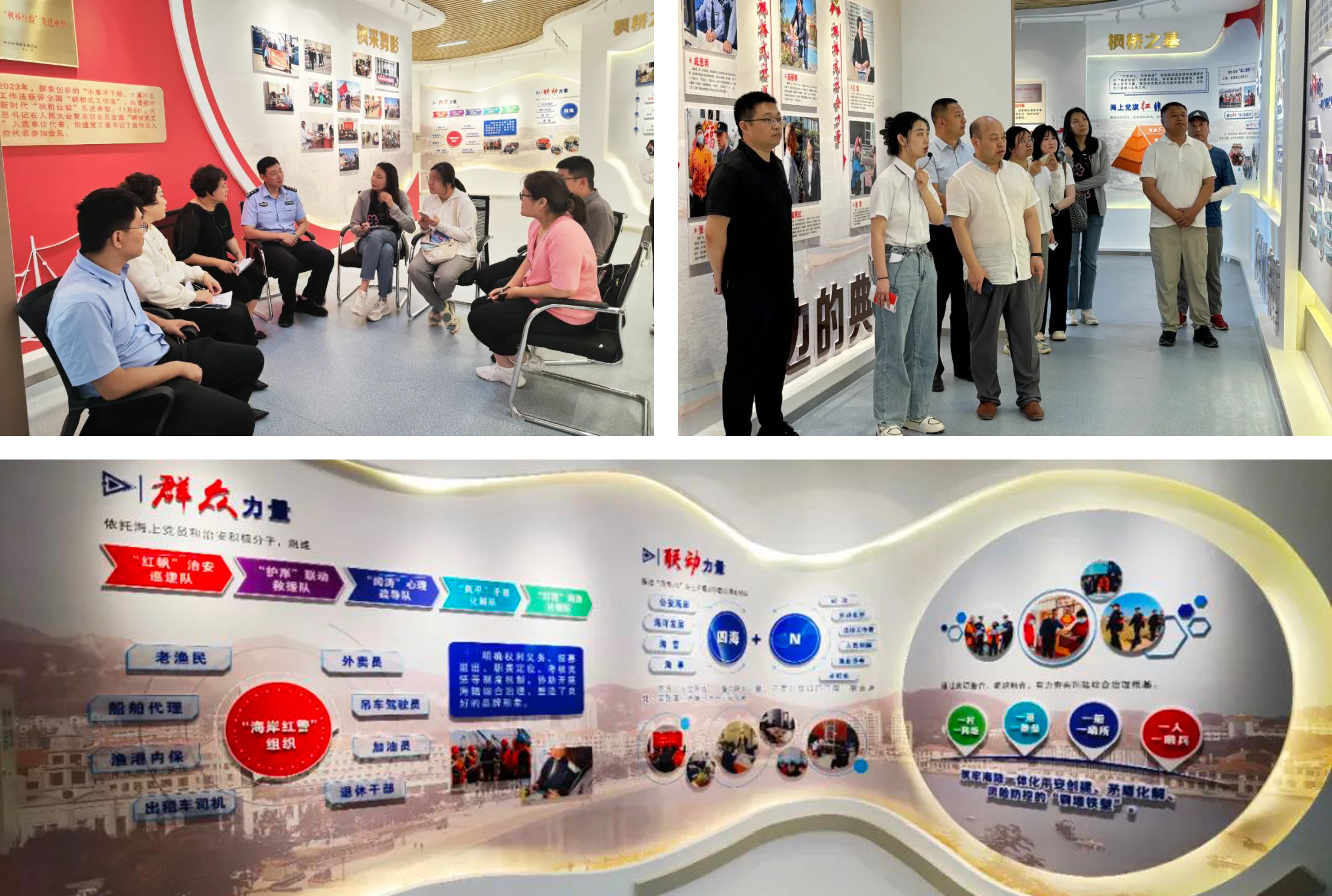 孙家疃街道安海社区是典型的渔村,当地创新发展新时代“枫桥经验”,探索以“小事不下船、大事不出港、矛盾不上交”为主要内容的“海上枫桥工作法”。记者们走入远遥浅海科技湾区一站式矛盾纠纷调解中心,参观警务工作站、诉调对接工作站、品牌调解室等,与法律明白人、网格员深入交流,了解枫桥经验环翠实践的工作成效。