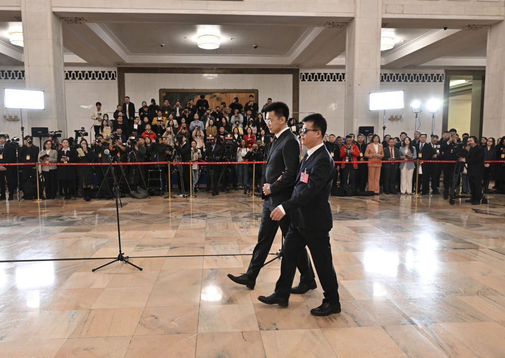开放日活动上,中外记者架起“长枪短炮”,把镜头对准代表:山东代表团把三分之一的提问机会给了境外媒体;面对来听会的教育部部长怀进鹏,湖南代表团十多名代表反映教育难题,部长认真记录……