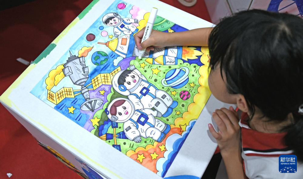 9月25日,浙江省台州市华东师范大学附属仙居学校学生在“画出心中最美的祖国”迎国庆主题绘画活动中画画。