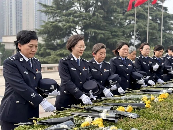 近日,河南省女子强制隔离戒毒所组织开展清明祭英烈活动。全体警察依次瞻仰烈士纪念碑,并向革命烈士敬献花束。 (河南司法行政在线)