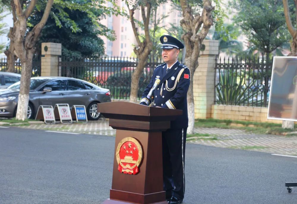 图为2021年12月4日,陈旭在海南省府城强制隔离戒毒所主持宪法宣誓活动。(海南省府城强制隔离戒毒所 供图)