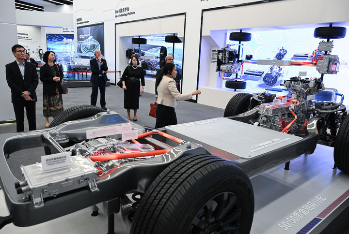 外宾在位于深圳市坪山区的比亚迪全球总部展厅参观(2024年7月22日摄)。新华社记者 李贺 摄