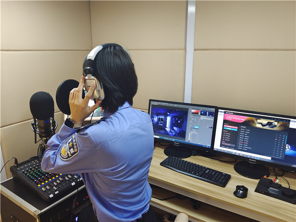 吉林省女子强制隔离戒毒所民警正在录播戒毒精选典型案例,制作线上有声读物,开展案例普法