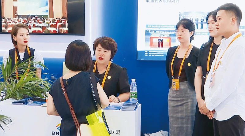 2023年9月2日至6日,中国国际服务贸易交易会法律服务专题展首次邀请“一带一路”律师联盟、香港律师事务所驻内地代表处参展,与50余家来自全国多地的律师事务所、仲裁机构、公证机构一道,展示涵盖国际经济合作、国际贸易、海事海商、跨境投资、民商事诉讼与仲裁等多个涉外法律服务领域的最新成果。图为法律服务专题展“一带一路”律师联盟展台。司法部供图