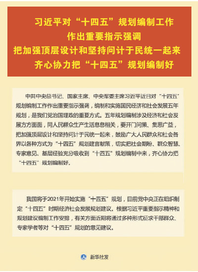 “党中央决定,下个月在北京召开党的十九届五中全会,重点研究国民经济和社会发展第十四个五年规划和2035年远景目标问题并提出建议。为了开好这次全会,党中央坚持开门问策、集思广益,以各种方式广泛听取各方面意见和建议。”习近平总书记如是说。